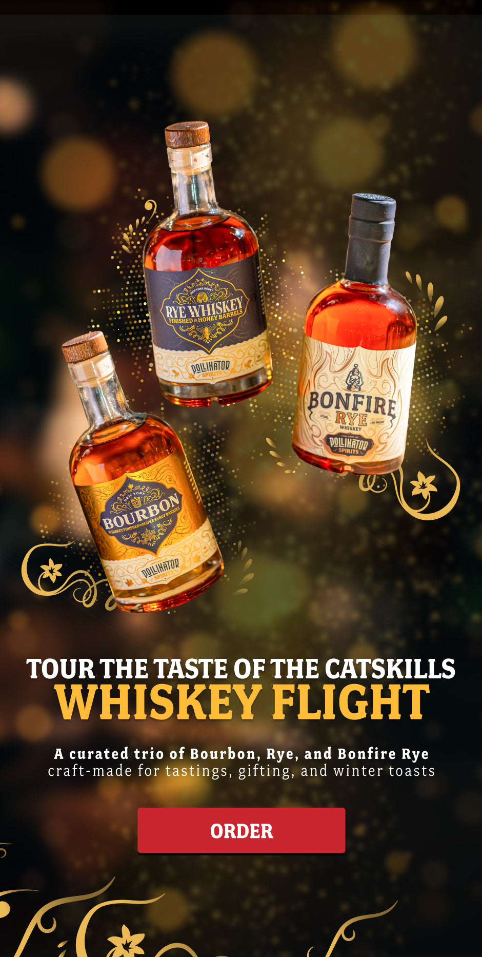 Explore our full lineup of spirits online, including bourbon made of local grain, rye whiskey, and fresh spirits crafted in the Catskills. With every bottle, we invite you to experience the spirit of Pollinator. Enjoy artisanal quality, authentic ingredients, and a true taste of New York.
